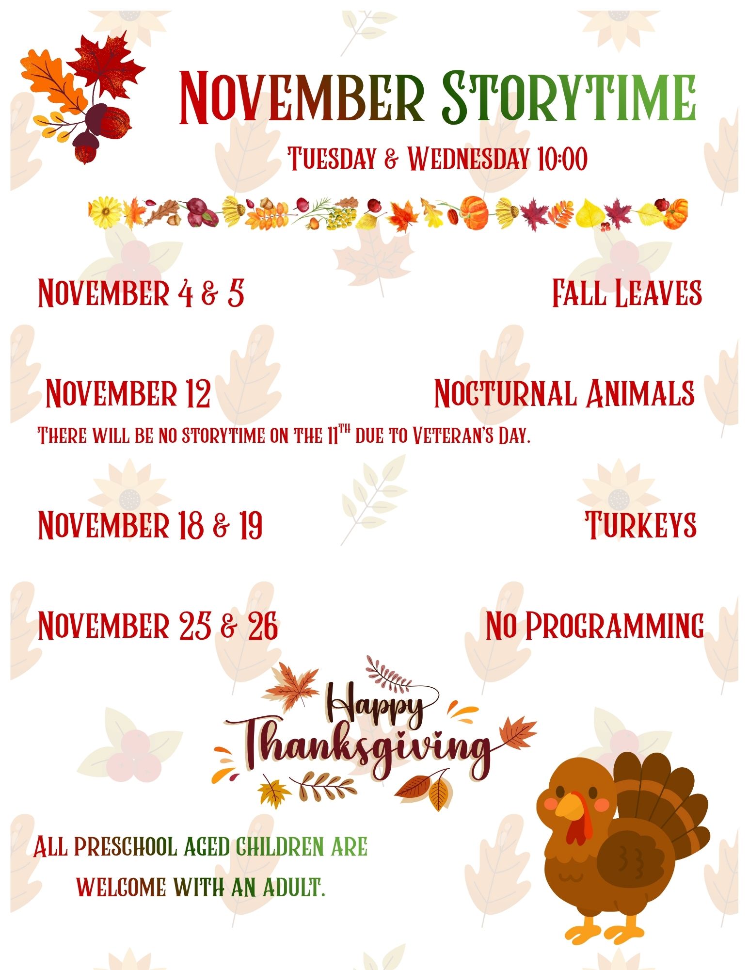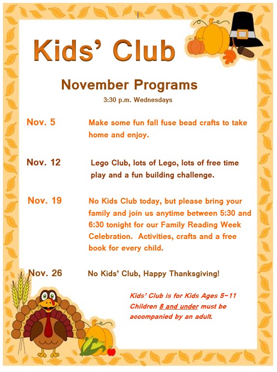 Children’s Programs for November